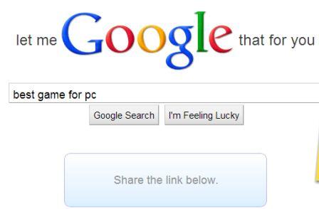 - Once done you will see an automated created link below, like this “https://lmgtfy.com/?q=best+geme+for+pc”